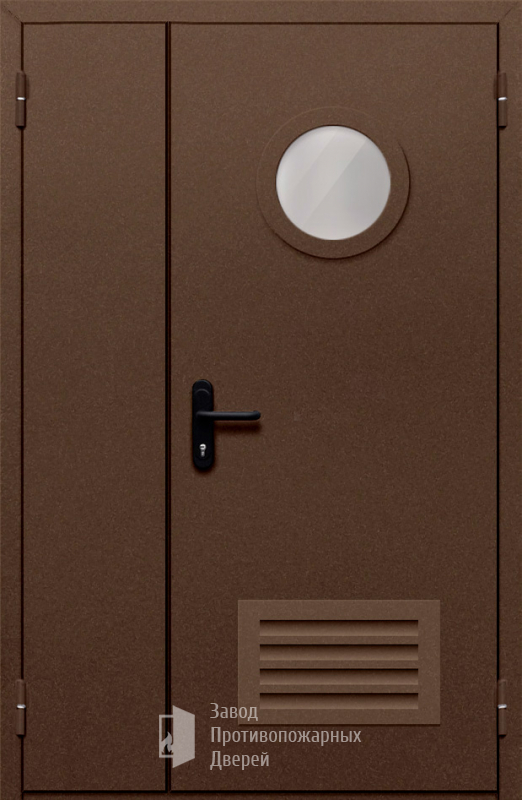 Противопожарная Полуторная дверь с круглым стеклом ДПМ-02-EIW60 с решеткой |