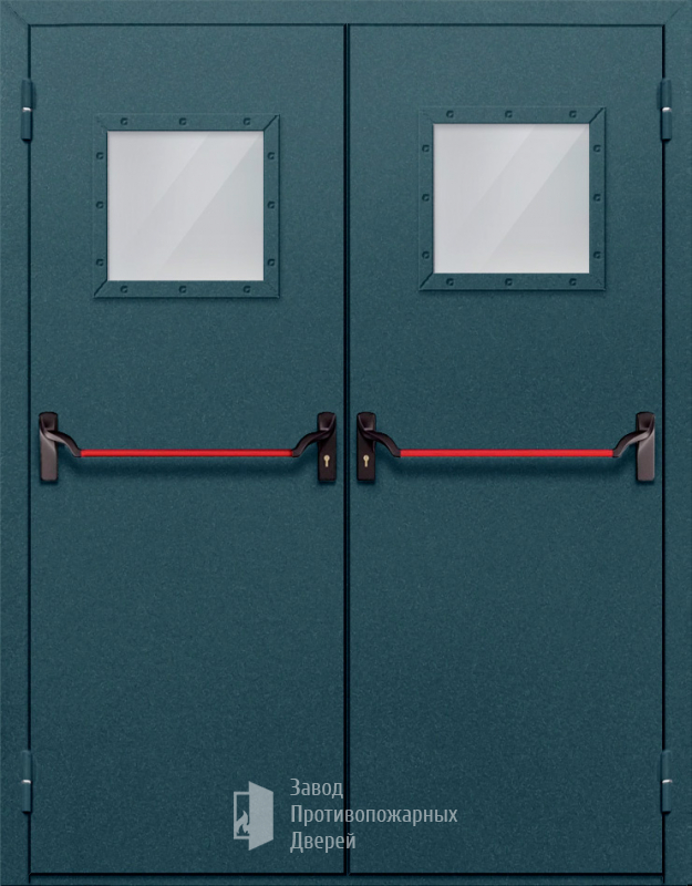 Противопожарная Двупольная дверь с квадратным стеклом ДПМ-02-EIW90 с антипаникой |