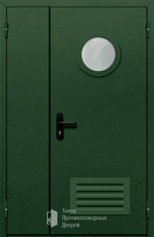Маркировка Противопожарная Полуторная дверь с круглым стеклом ДПМ-02-EIW30 с решеткой