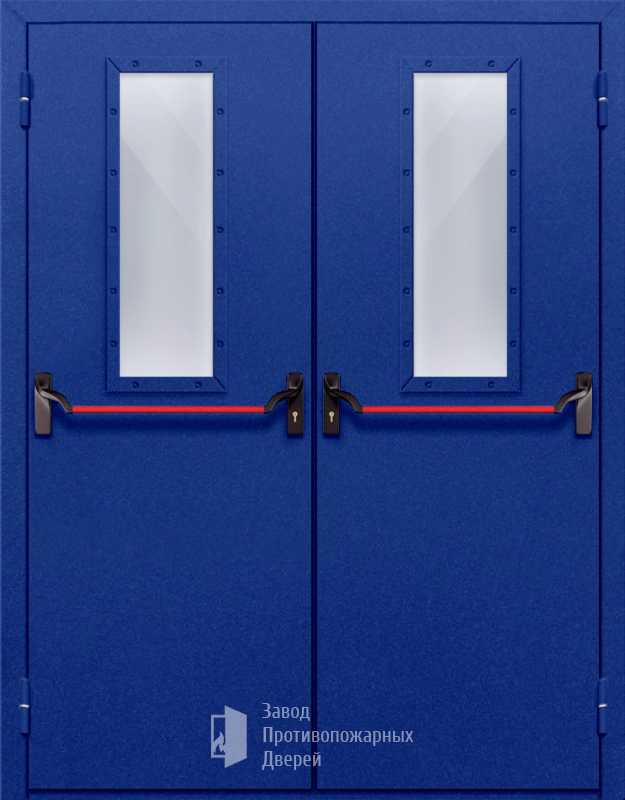 Маркировка Противопожарная Двупольная дверь с прямоугольным стеклом ДПМ-02-EIW60 с антипаникой