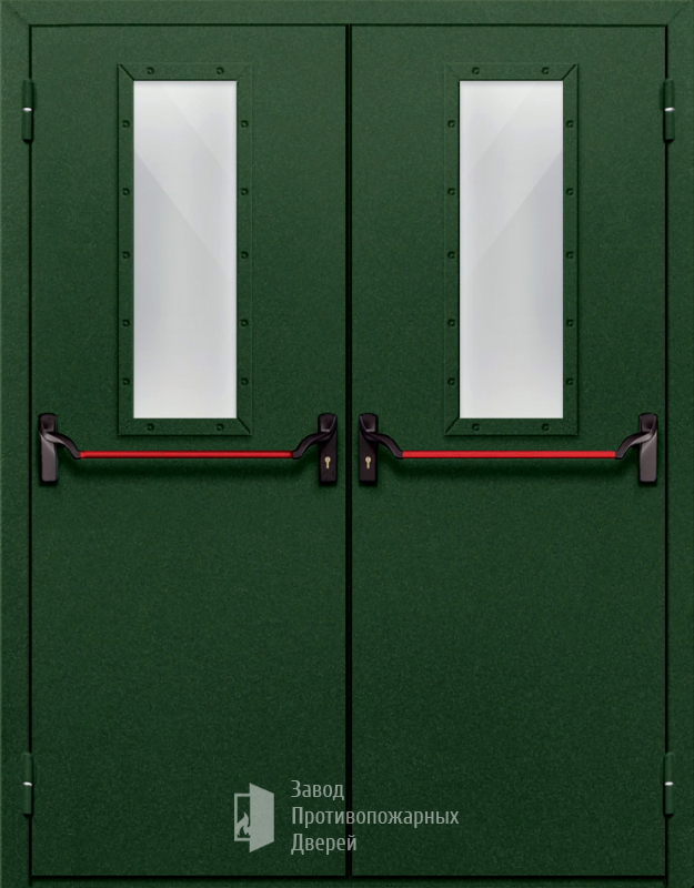 Маркировка Противопожарная Двупольная дверь с прямоугольным стеклом ДПМ-02-EIW15 с антипаникой