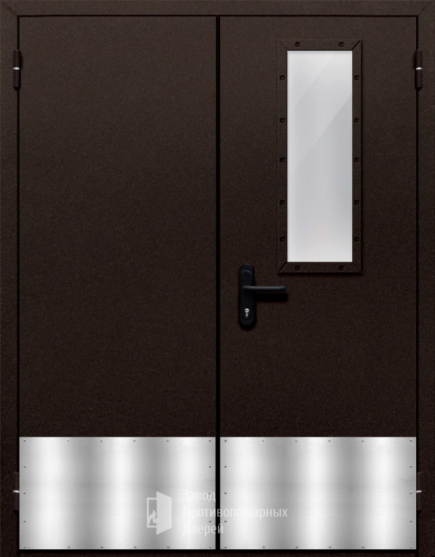 Маркировка Противопожарная Двупольная дверь с прямоугольным стеклом ДПМ-02-EIW45 с антипаникой
