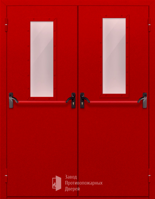 Маркировка Противопожарная Двупольная дверь с прямоугольным стеклом ДПМ-02-EIW60 с антипаникой