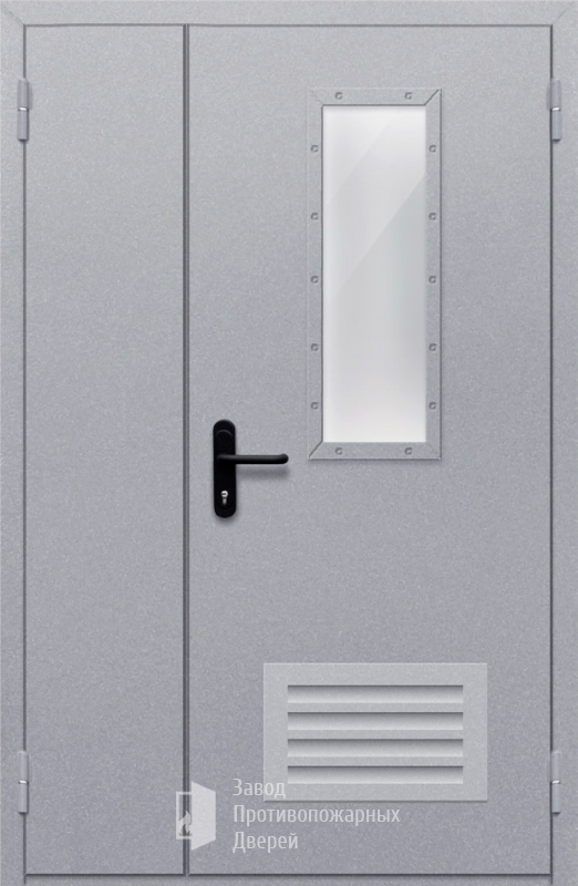 Маркировка Противопожарная Полуторная дверь с прямоугольным стеклом ДПМ-02-EIW60 с решеткой